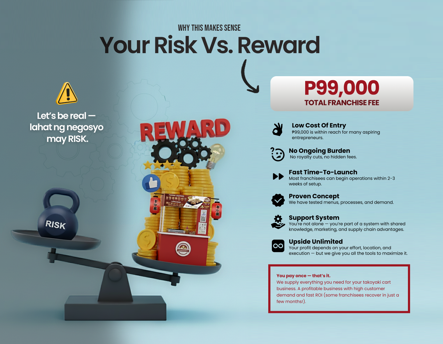 Pag nag-franchise ka sa Cylene’s Takowyaki, hindi ka bibigyan ng bare minimum. You’ll get a ready-to-operate business.